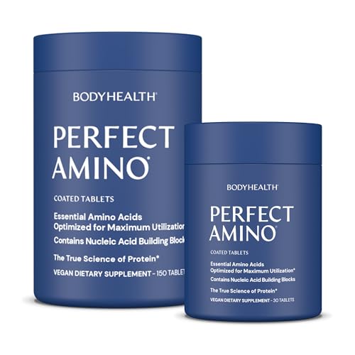 BodyHealth PerfectAmino Easy to Swallow Tablets, Essential Amino Acids Supplement with BCAAs, Vegan Protein for Pre/Post Workout & Muscle Recovery with Lysine, Tryptophan, Leucine (36 Servings)