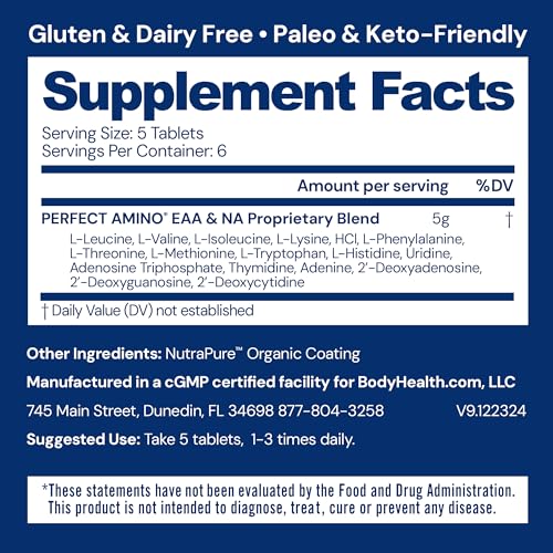 Specification: BodyHealth PerfectAmino Easy to Swallow Tablets, Essential Amino Acids Supplement with BCAAs, Vegan Protein for Pre/Post Workout & Muscle Recovery with Lysine, Tryptophan, Leucine (36 Servings)