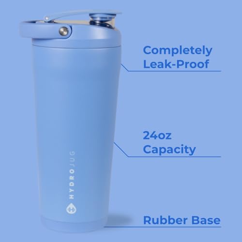 HydroJug 24 oz New Stainless Steel Shaker – Insulated, Leakproof, BPA-Free with Silent Mixing Grate – No Clumps, No Noise – Premium Shaker for Fitness, Sports & Everyday Use, Light Blue
